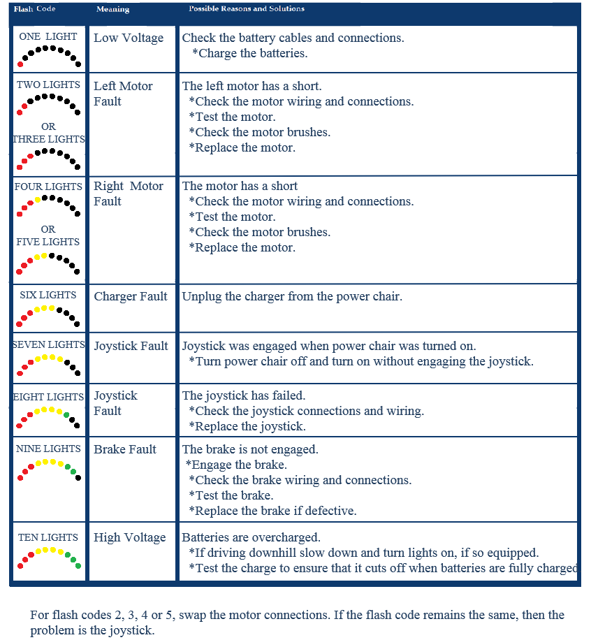 When the VSI controller senses a fault a number of battery indicator LED lights will flash.