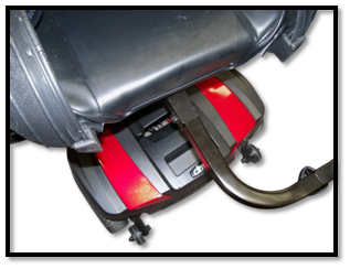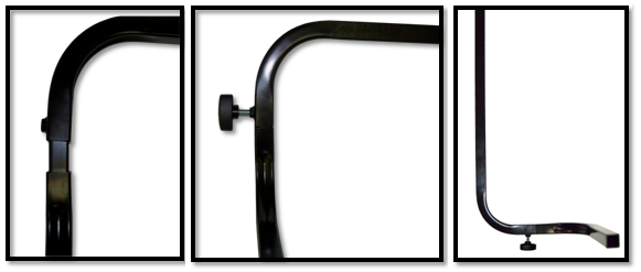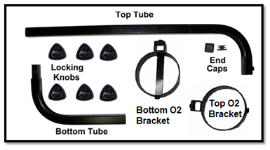 2. Slide the bottom tube into the top tube. Install one of the locking knobs into the top tube and tighten. Installing the bottom tube as shown will have the O2 tank on the right side of the seat. To have the O2 tank on the left side of the seat, flip the bottom tube 180 degrees and install into the top tube.