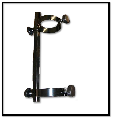 5. Slide the bottom O2 bracket onto the mounting bracket to the bottom of the mounting bracket, with the O2 bracket facing the middle of the bracket. Tighten the bracket. Slide the top O2 bracket onto the mounting bracket. Set it to the height appropriate for the tank being use and tighten.