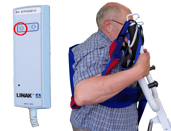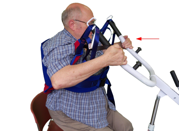 4. Position the standing sling behind the patient just below the shoulder blades. The attaching straps will be on the top of the sling.