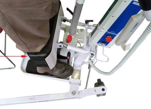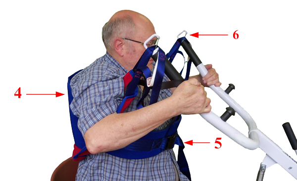 5. Bring the attaching straps under the arms to the front of the patient. Buckle the sling belt to secure the sling to the patient