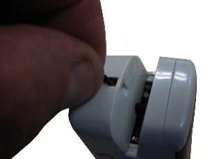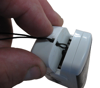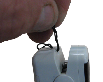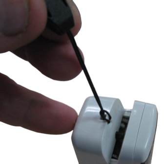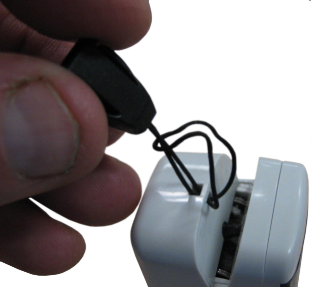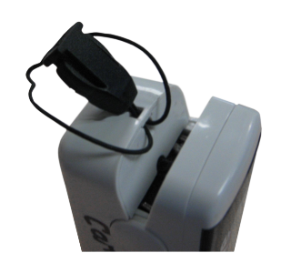 2. Squeeze the end of the cord together and insert it in the hole on top of the pulse ox.