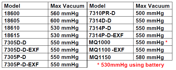 5. The vacuum should read at least the maximum specified vacuum for the unit .