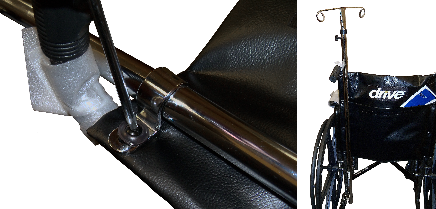 2. Slide the IV pole base and spacer sleeve (if needed) over the lower rear frame.